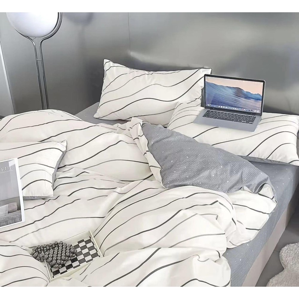 Двоспальне: простирадло 200х220 см - 1шт, підковдра на блискавці 200х215 см - 1шт, наволочка 50х70 см - 2 шт.
